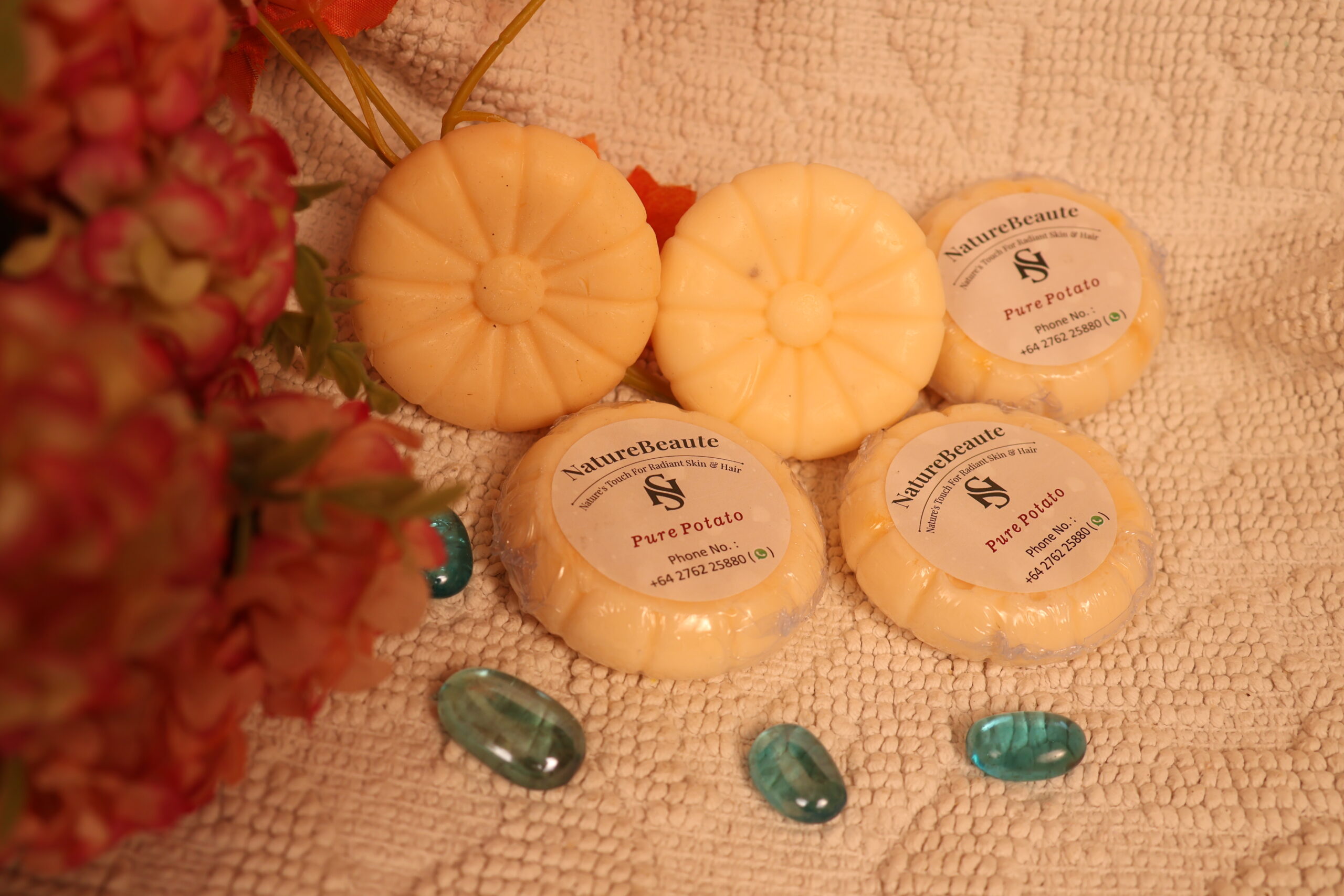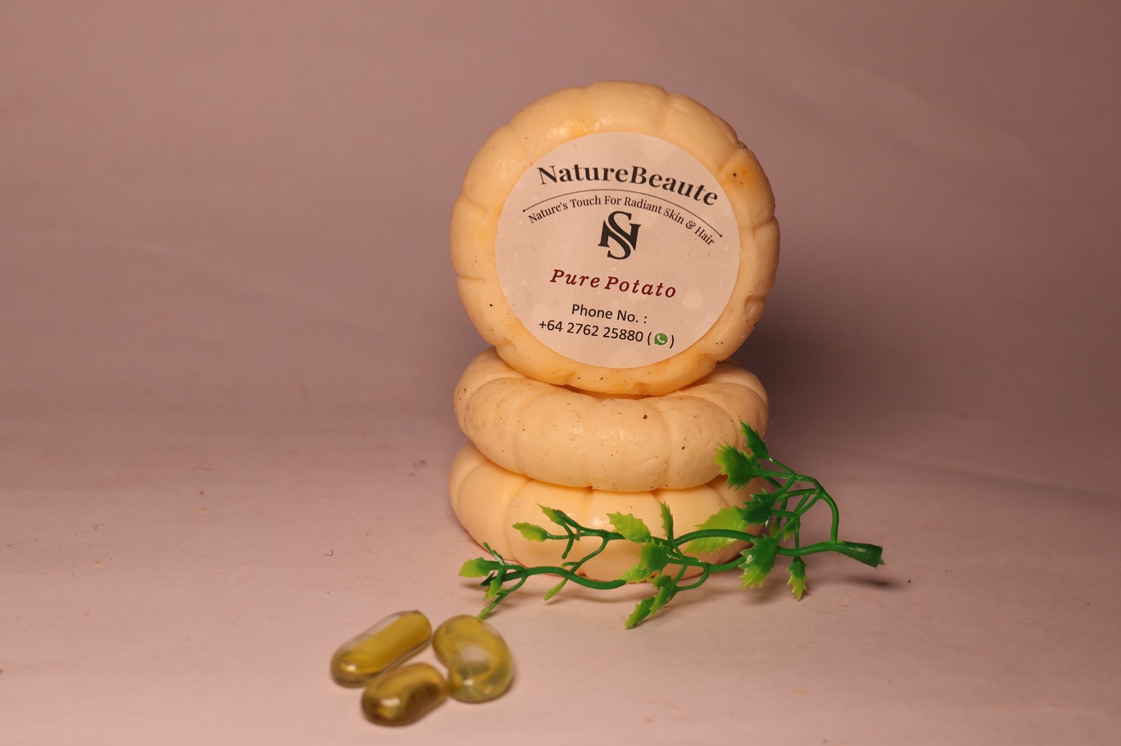 Transform your skin care routine with NatureBeaute face cleanser. Harnessing the power of Potato & Fresh Tomato Juice. This skin-brightening bar works to fade blemishes, tan and dark circles, leaving your skin visibly refreshed and even-toned.